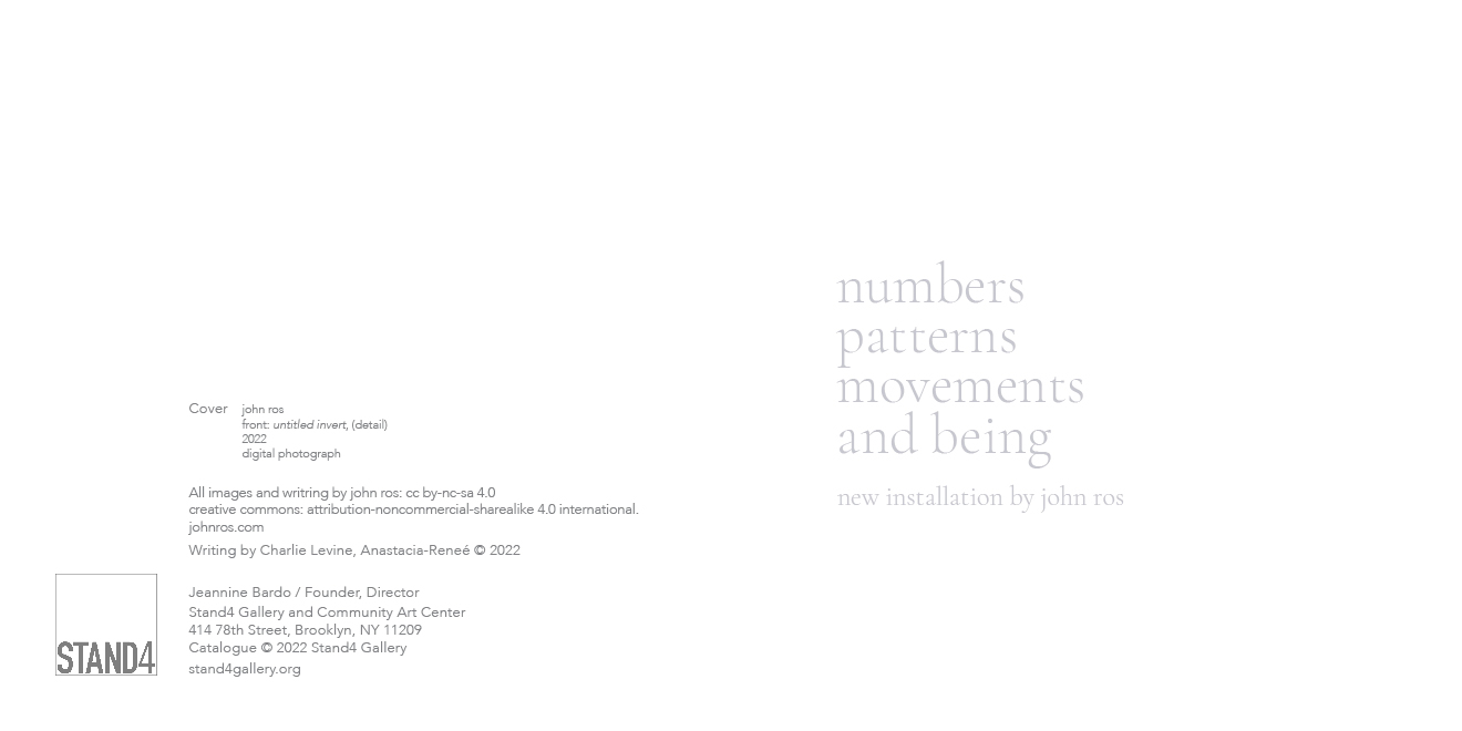 multiform conceptual installation artist john ros at stand4 gallery. catalogue for numbers, patterns, movements and being — brooklyn, new york city. on view from 09 september through 29 october 2022.